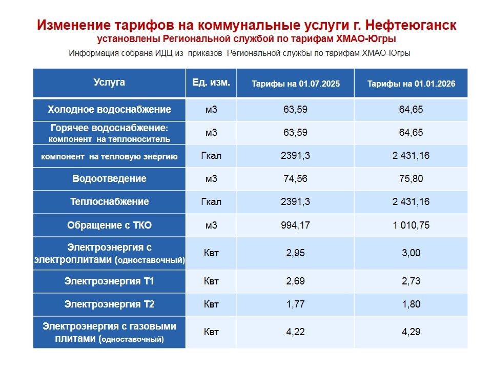 Приводим в таблице ниже тарифы на коммунальные услуги, действующие до нового года, и с 1 января 2026 года.