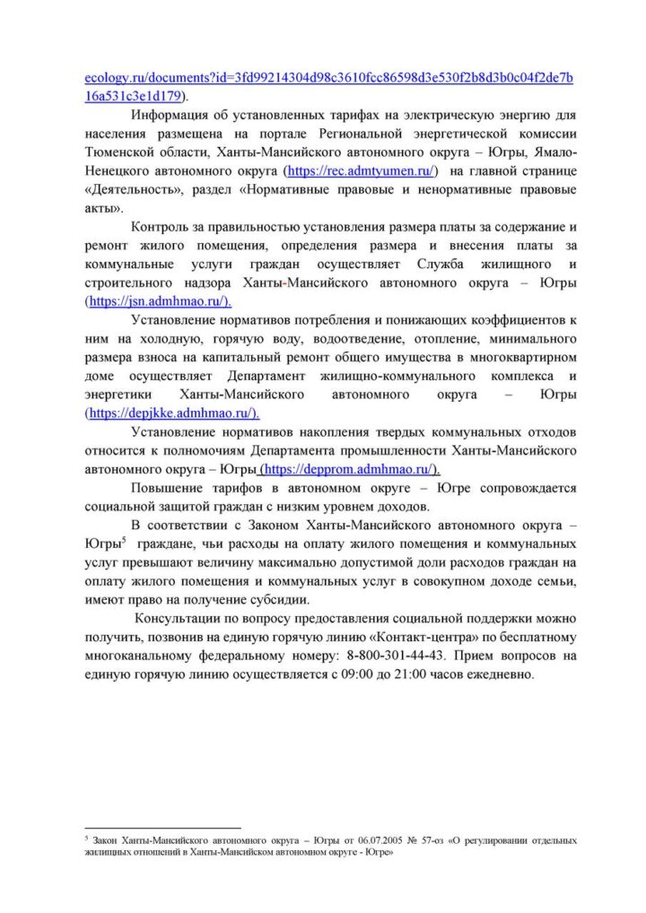 Информация по изменению тарифов с 1 января 2026